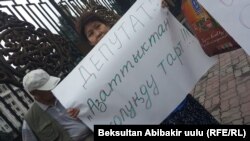 Бүгүн Ак үй алдында "Азаттык" радиосун колдогон митинг өттү. Ага 10 чакты укук коргоочу, жарандык активист катышып, парламентте демилгеленип жаткан мыйзам долбооруна каршылык билдиришти.